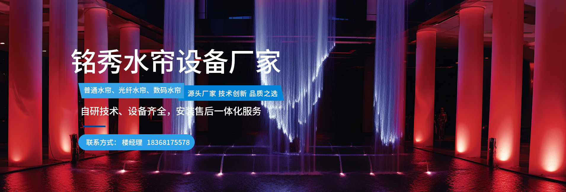 杭州銘秀水藝水景設備有限公司位于杭州余杭鳳都工業園區內,是一家專業從事噴霧(霧森)設備、冷霧設備、噴泉設備集各種新型水景設備生產、銷售與租賃的企業。 公司技術力量雄厚,機械加工設備齊全,并擁有一支經驗豐富的設備研發隊伍和一套完善的售后服務系統。
